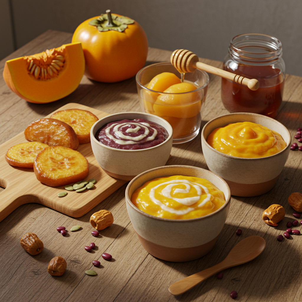 - 만드는 법: 찐 단호박과 우유, 꿀을 믹서에 갈아줍니다. 따뜻하게 데운 후 잘게 다진 견과류를 올려주면 완성!