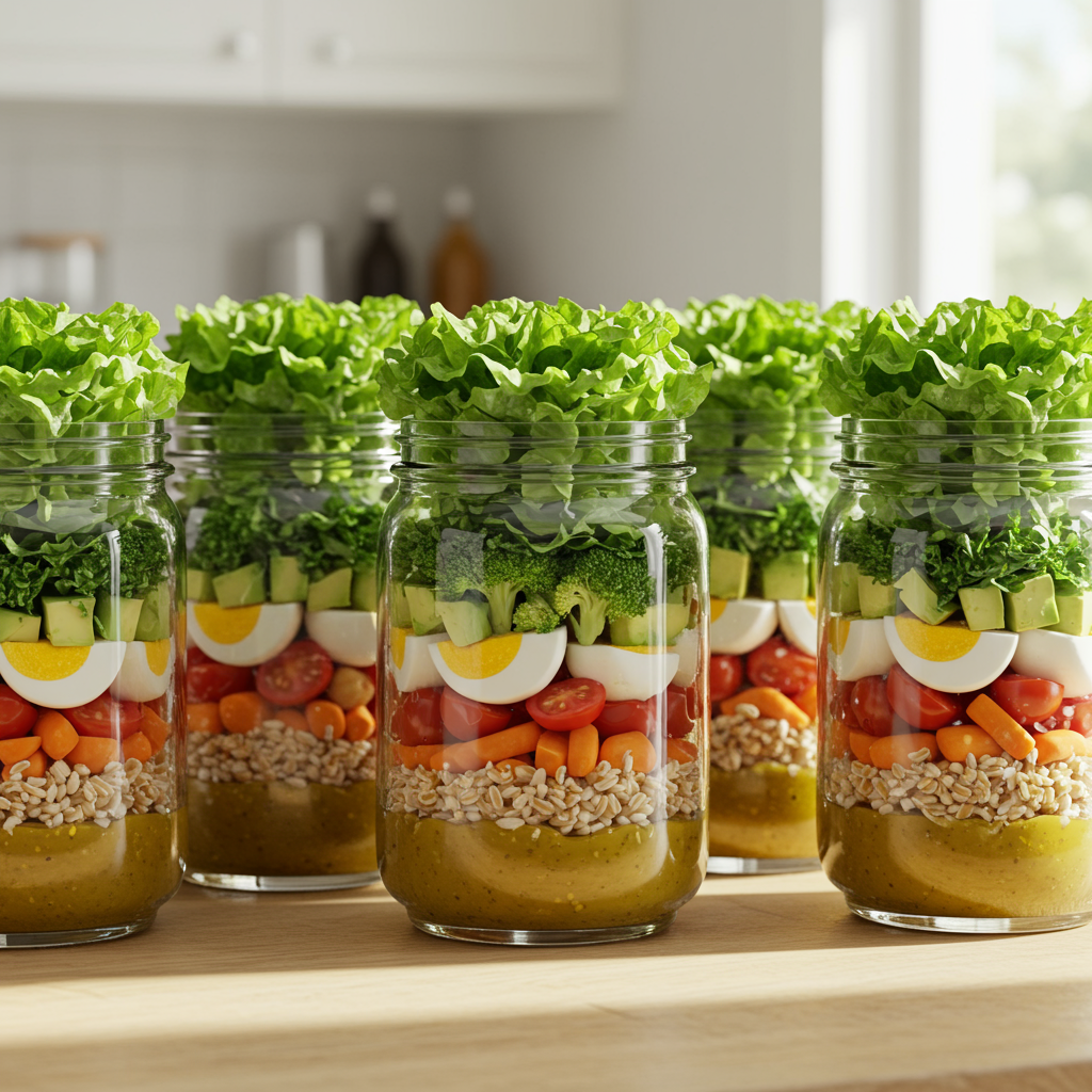 주말에 딱 30분만 투자하면 일주일 내내 신선하고 건강한 샐러드를 즐길 수 있다는 사실, 믿어지시나요? 바로 '병 샐러드'의 마법이랍니다! 투명한 유리병에 재료를 차곡차곡 쌓아두면 신선함은 물론, 먹을 때마다 꺼내기만 하면 되니 이보다 더 편리할 순 없죠. 바쁜 직장인에게는 그야말로 밀프렙(Meal Prep)의 혁명이라고 할 수 있어요.