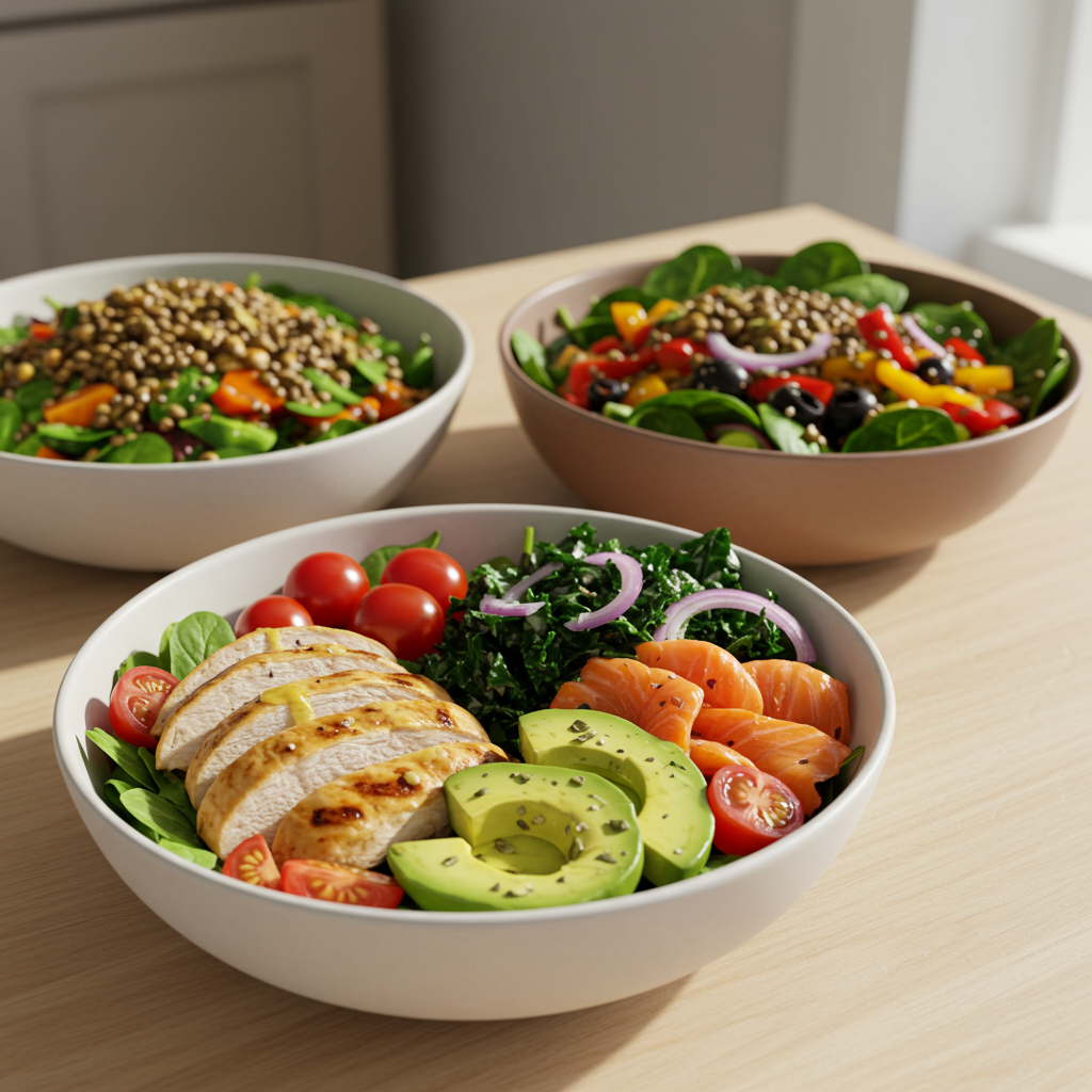 - ① 닭가슴살 아보카도 샐러드: 든든한 단백질 폭탄