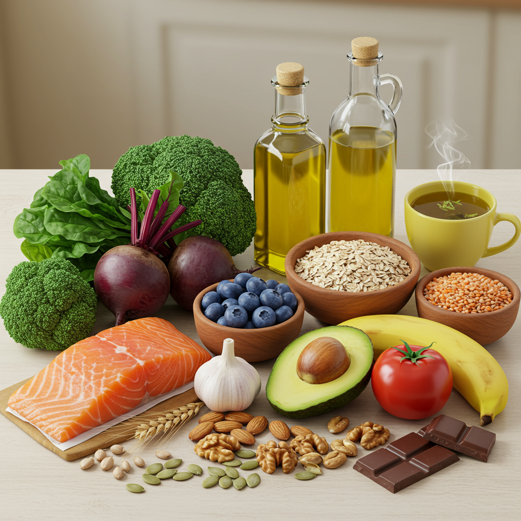 - 추천 식품: 엑스트라 버진 올리브 오일, 녹차, 다크 초콜릿 (카카오 70% 이상)