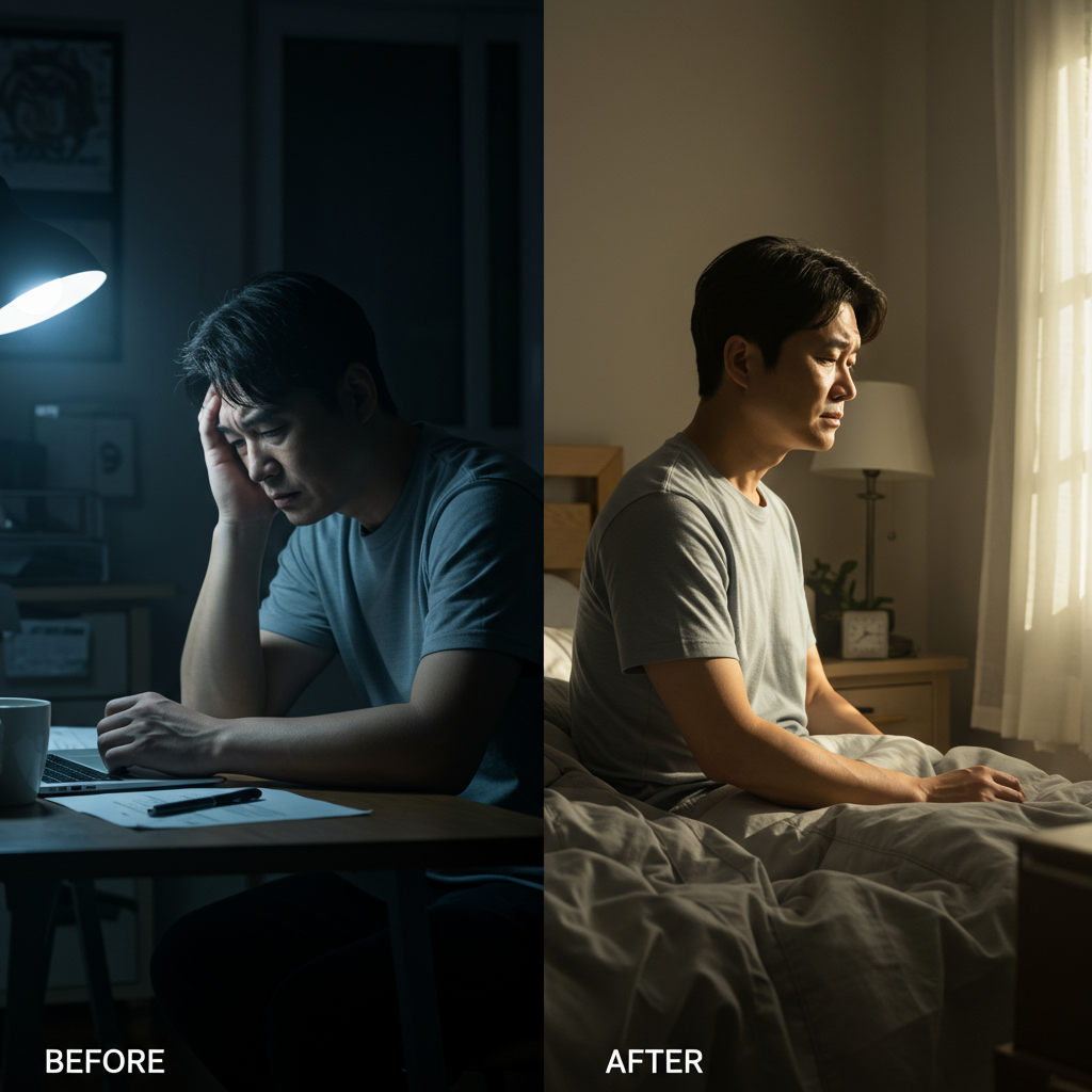 - 일상: 퇴근 후에도 업무 생각에 시달리고, 작은 일에도 쉽게 짜증을 내며, 수면 부족으로 늘 피곤함을 느꼈습니다.