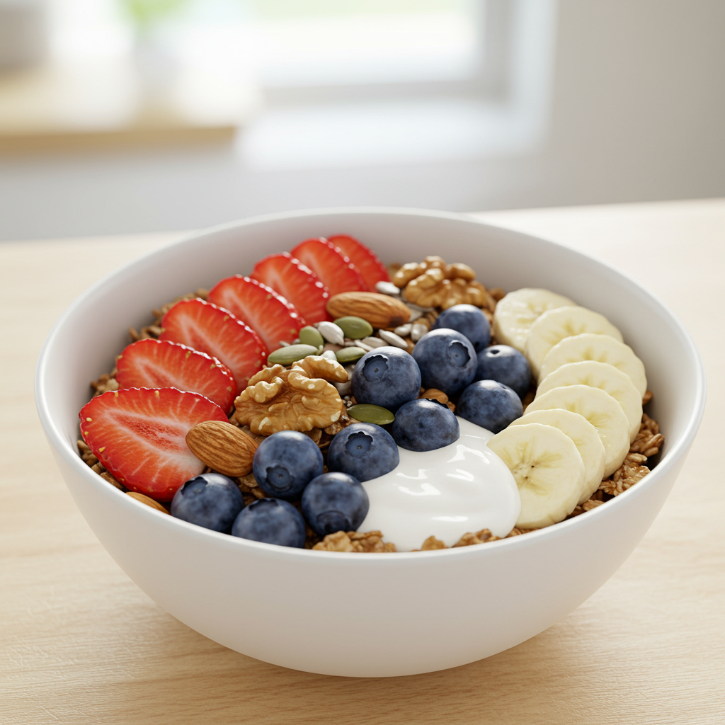 - 신선한 과일 추가: 제철 과일(딸기, 블루베리, 바나나 등)을 썰어 넣으면 자연스러운 단맛과 비타민, 항산화 성분을 더할 수 있습니다. 색감도 예뻐서 눈으로도 즐거워요!