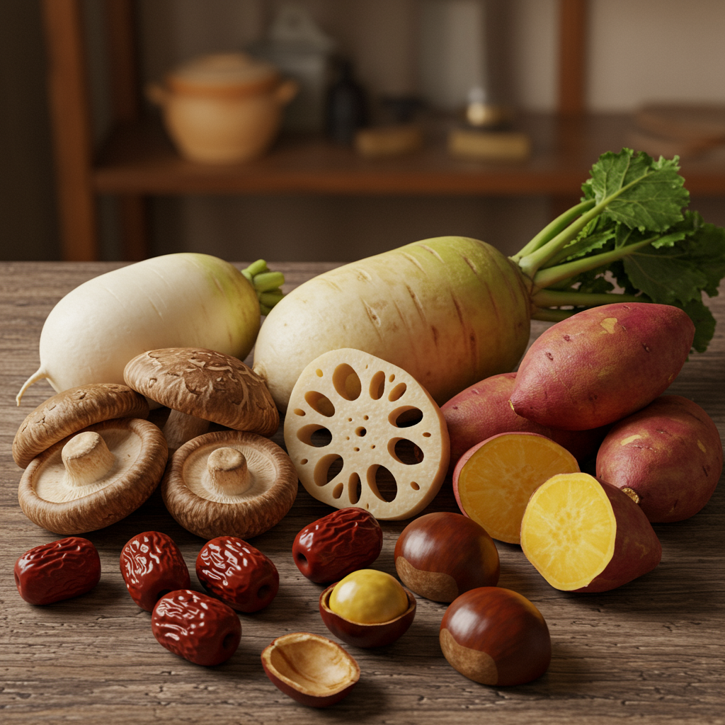 무, 연근, 우엉, 고구마 같은 뿌리채소들은 땅의 기운을 듬뿍 머금고 자라는데요. 이들은 식이섬유가 풍부해서 소화 개선과 장 건강 증진에 큰 도움을 줍니다. 특히 무는 소화를 돕는 효소가 많아 속을 편안하게 해주고, 연근은 탄닌 성분이 있어 지혈 작용과 염증 완화에도 좋다고 알려져 있어요. 쌀쌀해지는 가을에 따뜻한 뿌리채소 요리 한 그릇이면 속이 든든해질 거예요. - ③ 대추와 밤: 기력 회복과 심신 안정