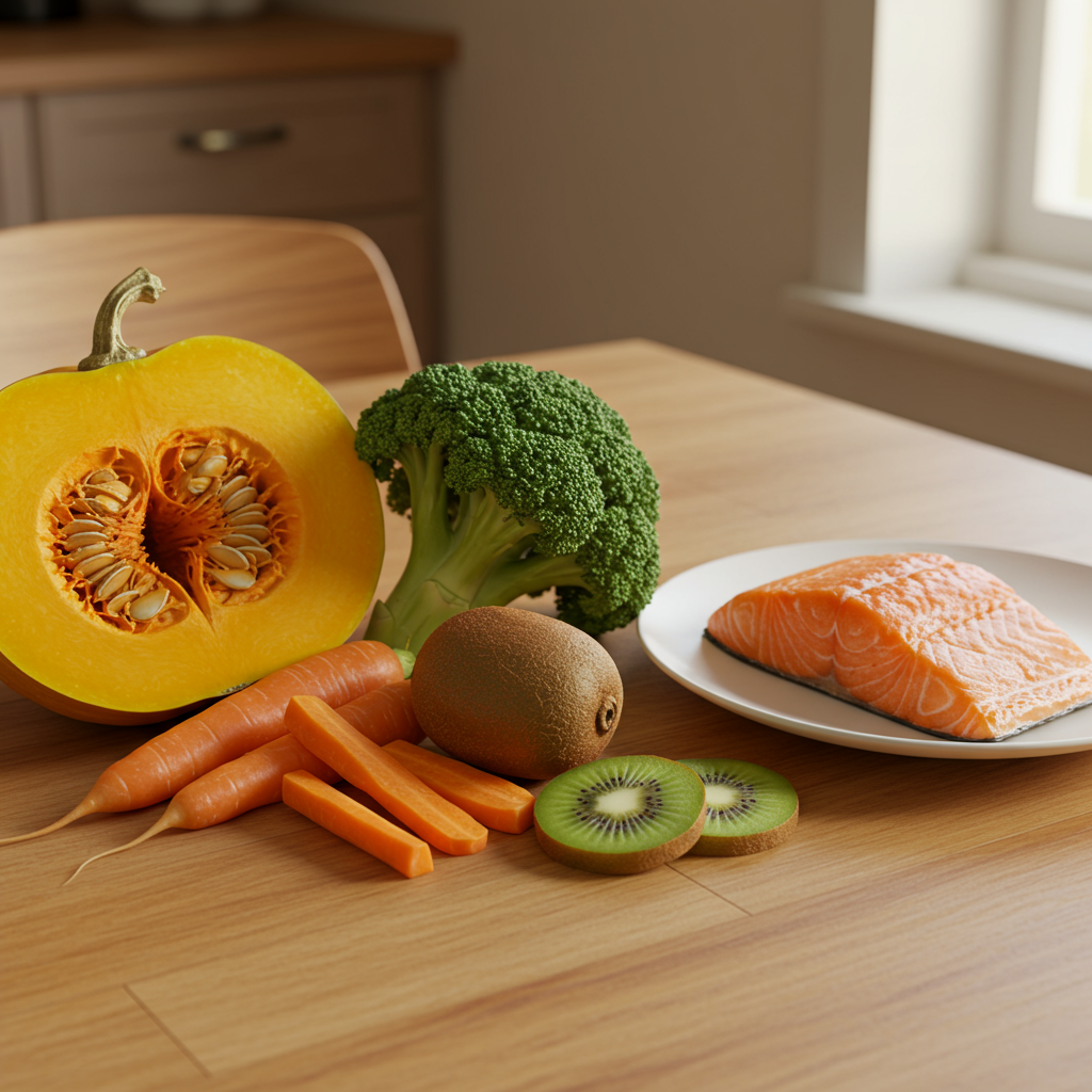- 호박 퓨레, 당근 스틱, 키위 조각: 부드러운 호박 퓨레는 아기 이유식으로도 좋고, 조금 큰 아이들은 찐 호박을 으깨어 먹이면 좋아요. 아삭한 당근 스틱은 씹는 재미를 주고, 껍질 벗긴 키위 조각은 상큼한 비타민 충전 간식으로 최고예요.